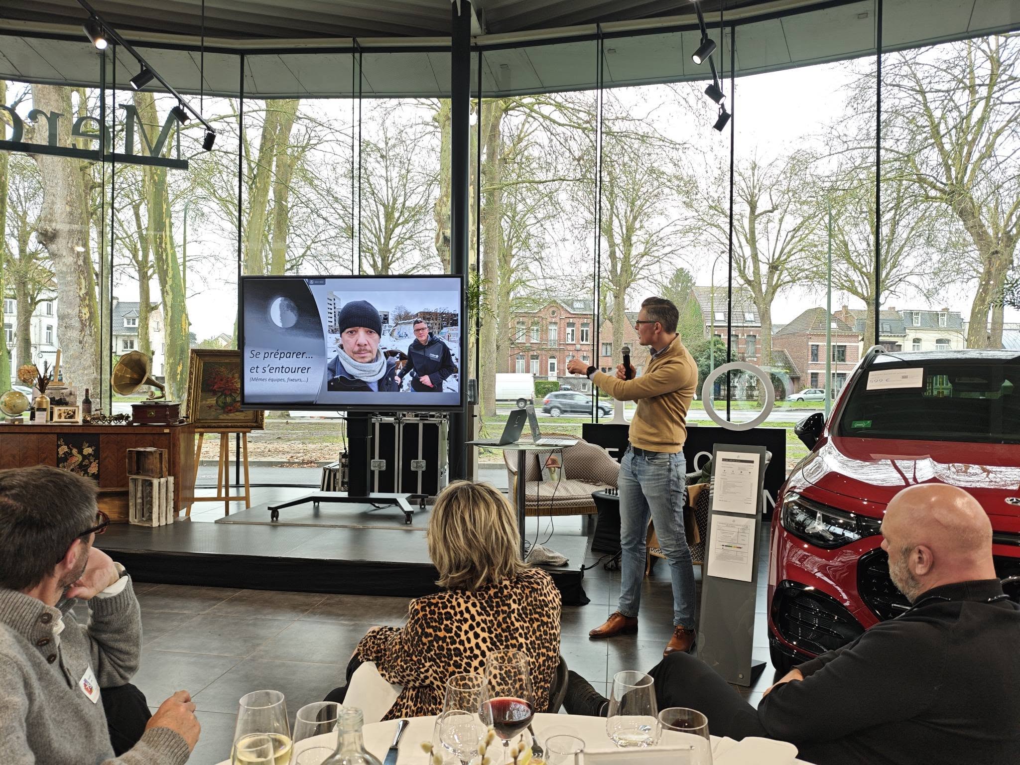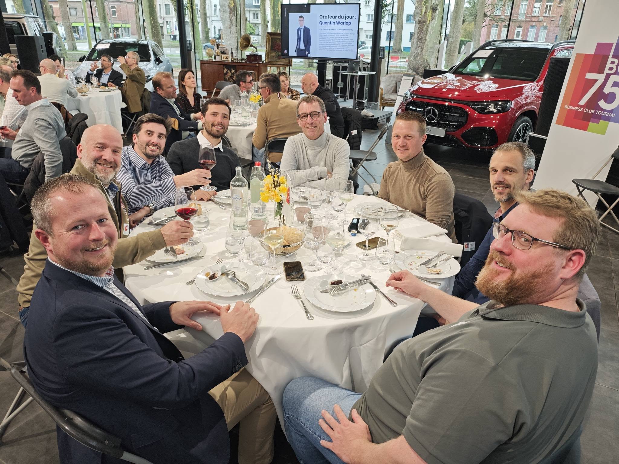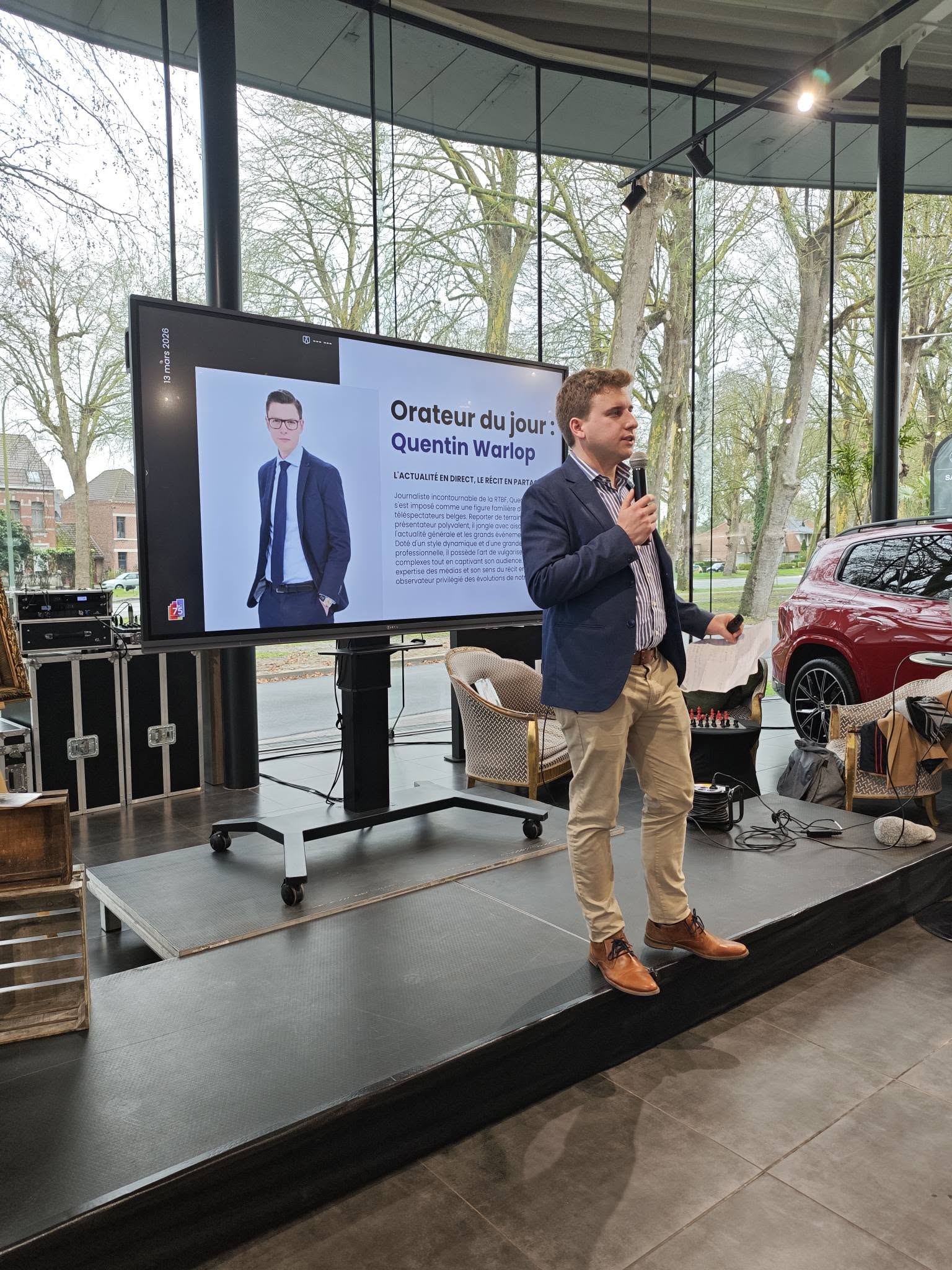 – Ensuite, notre orateur, Quentin Warlop a captivé nos membres et invités au milieu du superbe show-room Mercedes Tournai.