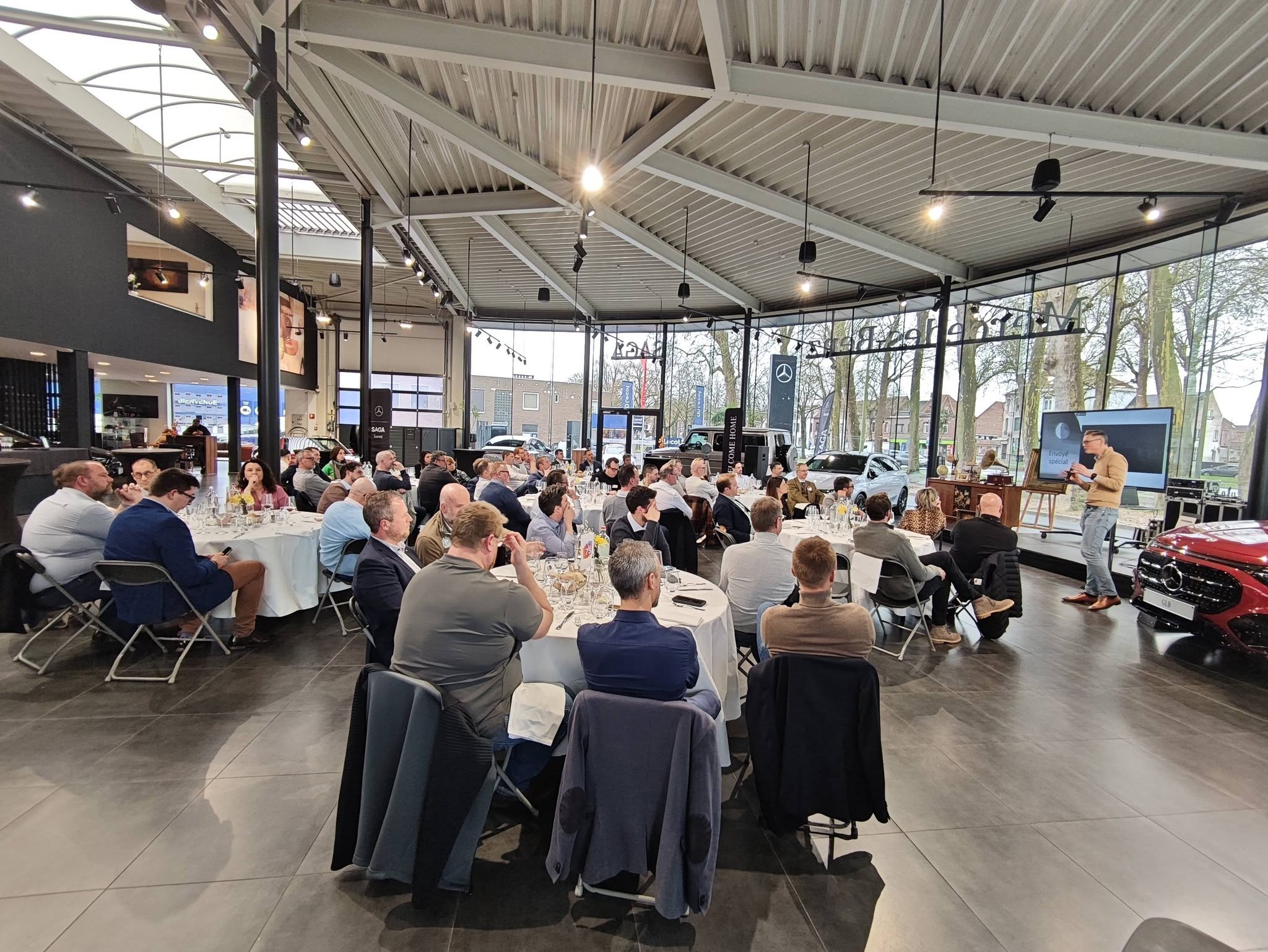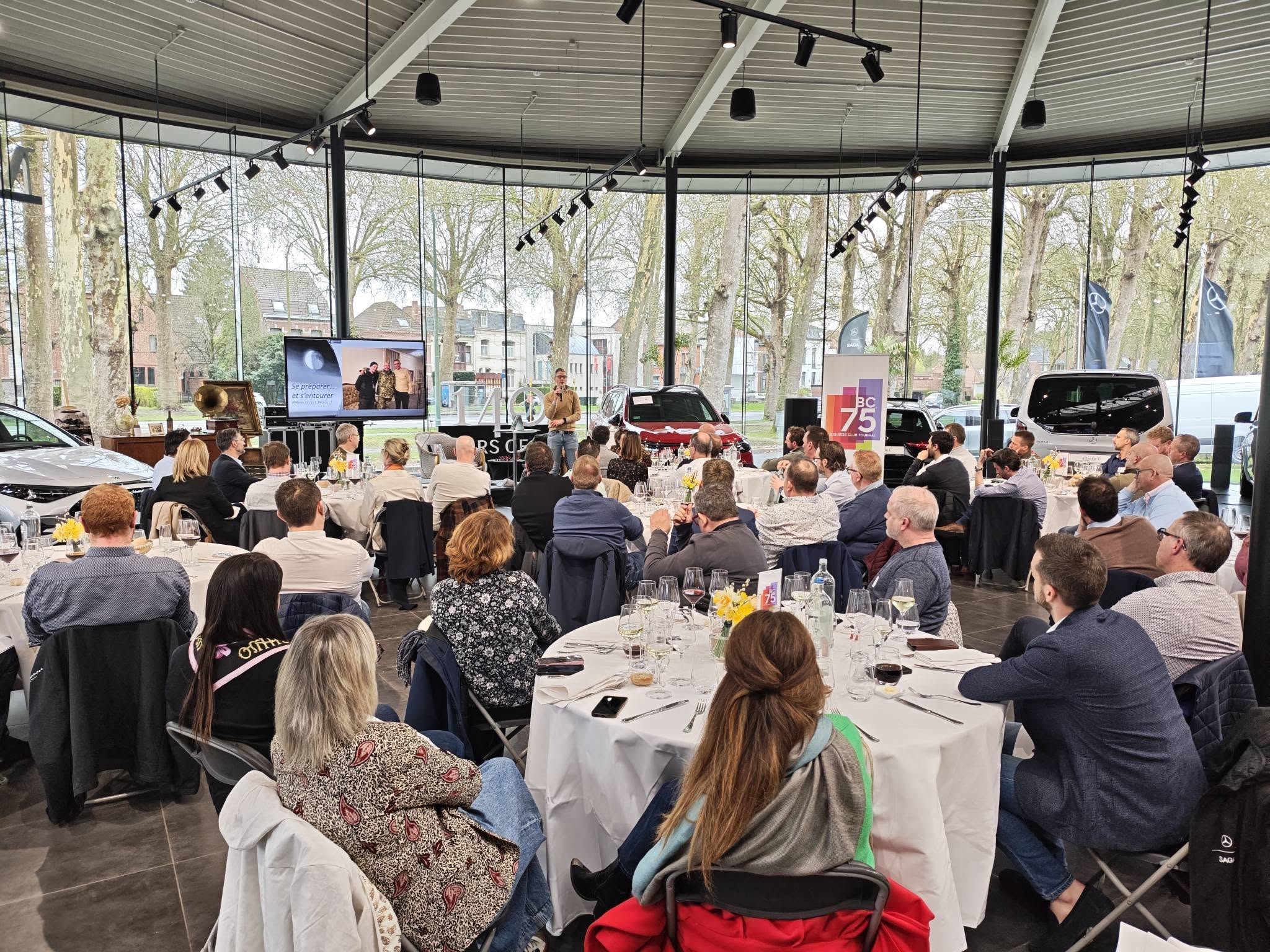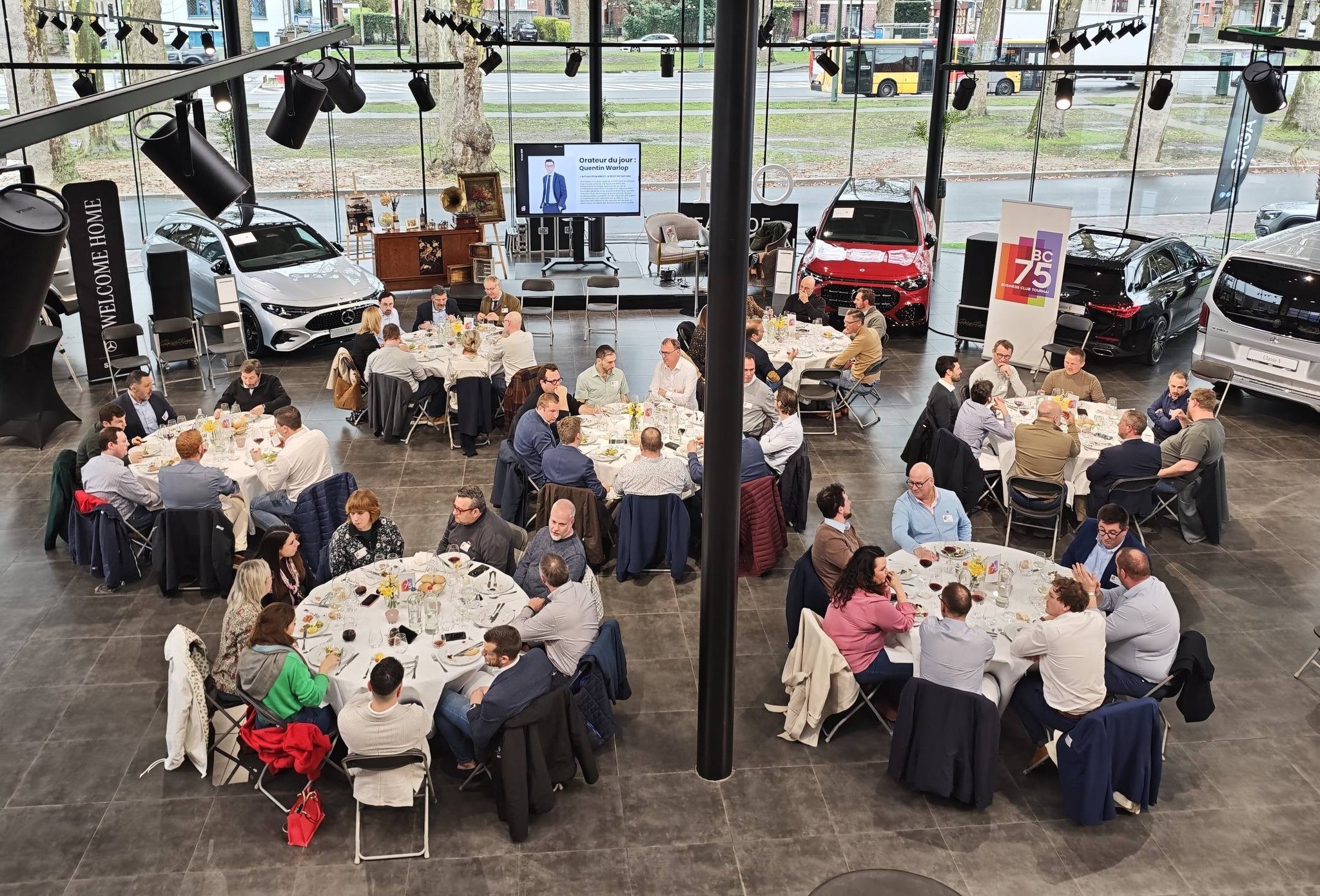 – Ensuite, notre orateur, Quentin Warlop a captivé nos membres et invités au milieu du superbe show-room Mercedes Tournai.